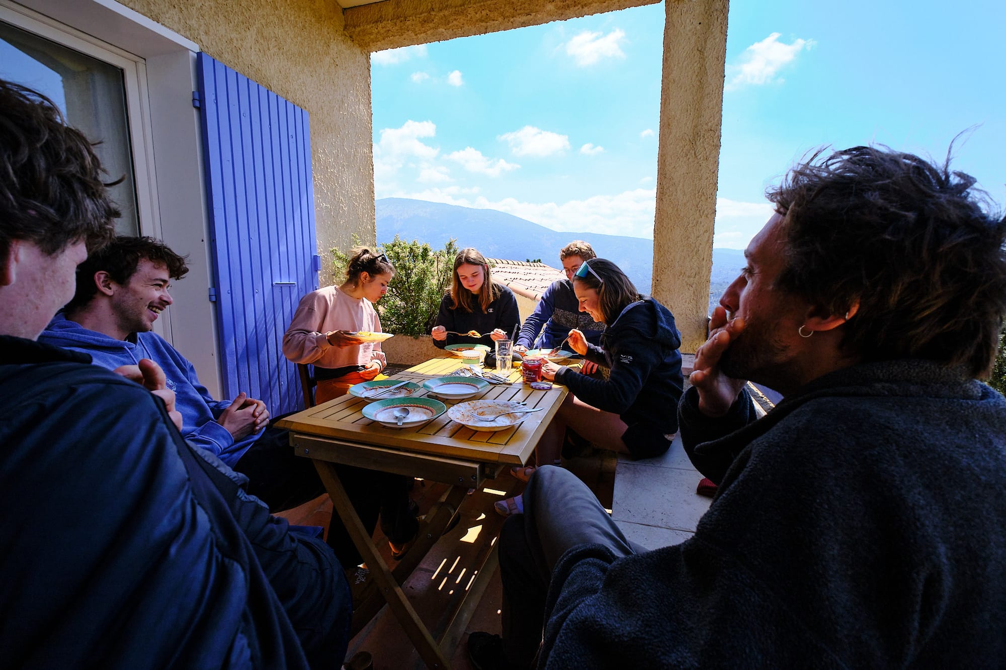 Les trips avec la BRCT c'est la bonne ambiance garantie ! Lors des journées de repos on va se baigner dans le Toulourenc, Madeline nous fait une séance de mobilité et de stretching...